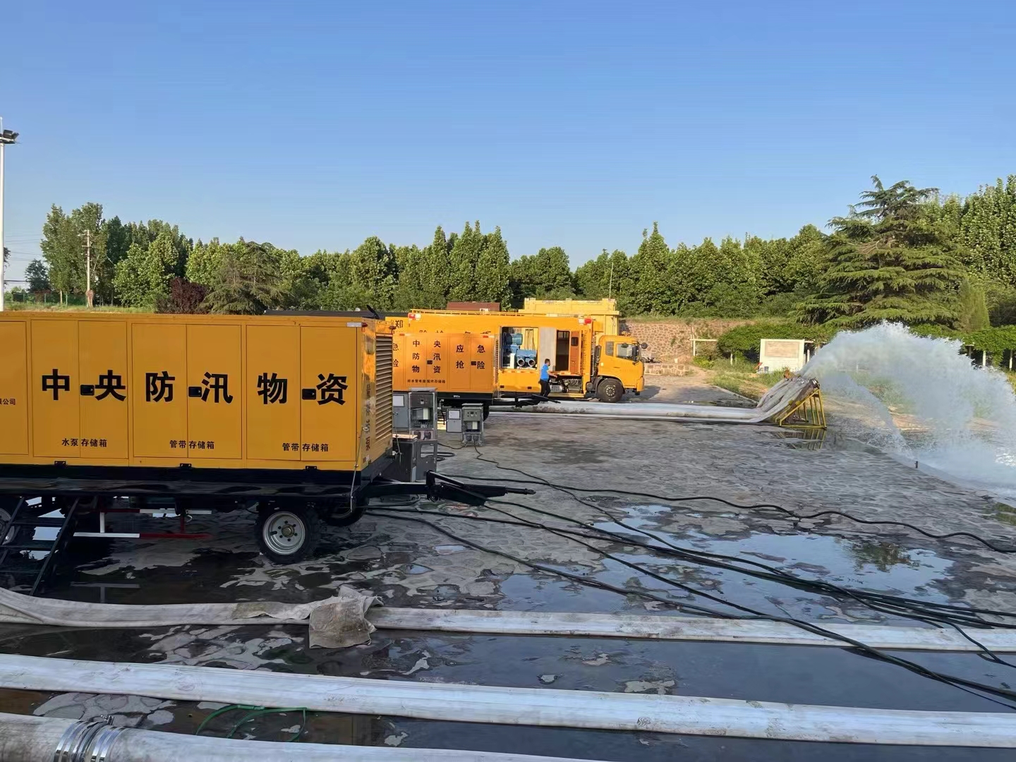 抗洪現(xiàn)場共計神龍大流量排水搶險泵車30套,根據(jù)抗洪現(xiàn)場的實際情況,按照抗洪搶險指揮部的要求,搶險小分隊實行人員輪流上崗,排澇設備24小時不停機連續(xù)作業(yè),與其它省份搶險小分隊一起爭分奪秒排澇,盡最大努力,以最快的時間排完受災區(qū)域洪水。
